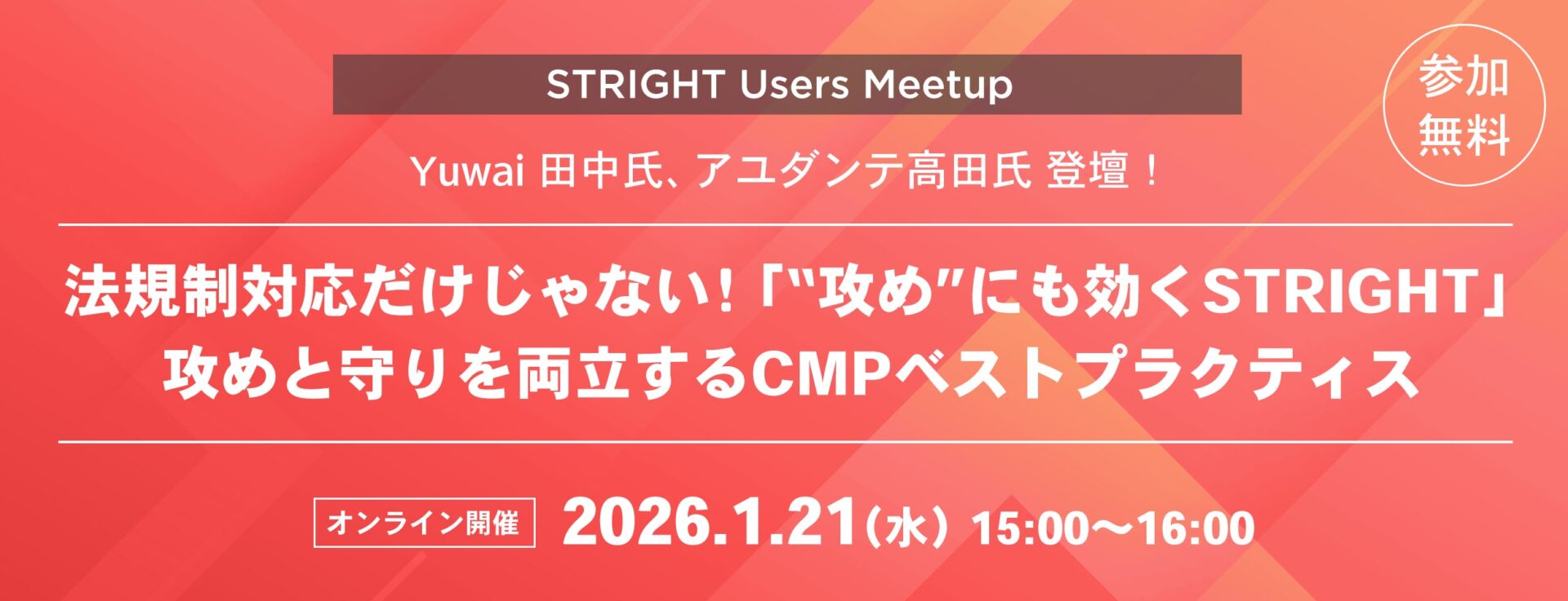 株式会社インターネットイニシアティブ社が主催する、Cookie 同意管理ツール STRIGHT のイベント「STRIGHT Users Meetup」に弊社代表の田中が登壇することとなりましたのでお知らせいたします。